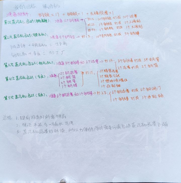 写在前面:我是最近玩儿的华夏人生,我一直在传承六单机,是的单机。是为了自己攀科技树,一般不养娃。有小伙伴投胎到传承六。看见妈妈头上是英文就是我了。我想做个小流程图帮新的女娲准备开始进入蒸汽时代不知道怎么用纽科门的烦恼。晚上会出在游戏里截图,我先放个我自己手写的流程路当做预告。溜了,忙着打工。哈哈哈
