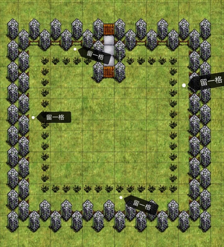 建家为了避免不必要的麻烦通常会选择围墙推荐使用◎双层墙➕一圈阻碍移动物(玫瑰 树 甘蔗 竹子)注意阻碍物与四面墙都要空一格好处:避免别的野生夏娃卡墙进来(野生夏娃卡墙进来会进入留着的一格空隙内,然后饿死)◎双层墙内侧使用东西栅栏 是内侧!外侧别用!好处:当门被堵时,可以在家里砍掉一个玫瑰或者树使用短木棍插在栅栏上就可以出去(栅栏只能在内侧可以操作,外侧插不上短木棍,所以只有家