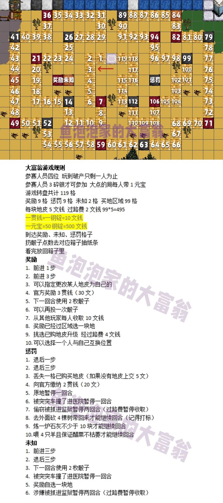 大富翁的确定花了更多的时间根据我家的地形解决了一大面积没有内容的难题可是也需要更多的肝才行需要提前准备30+的白黄粉蓝的地毯买的地就铺上地毯路过的就得交过路费同样希望有肝好的朋友能提前做出来hhh这个游戏门槛更高一些3碎银到1元宝以上不等规模玩耍更加