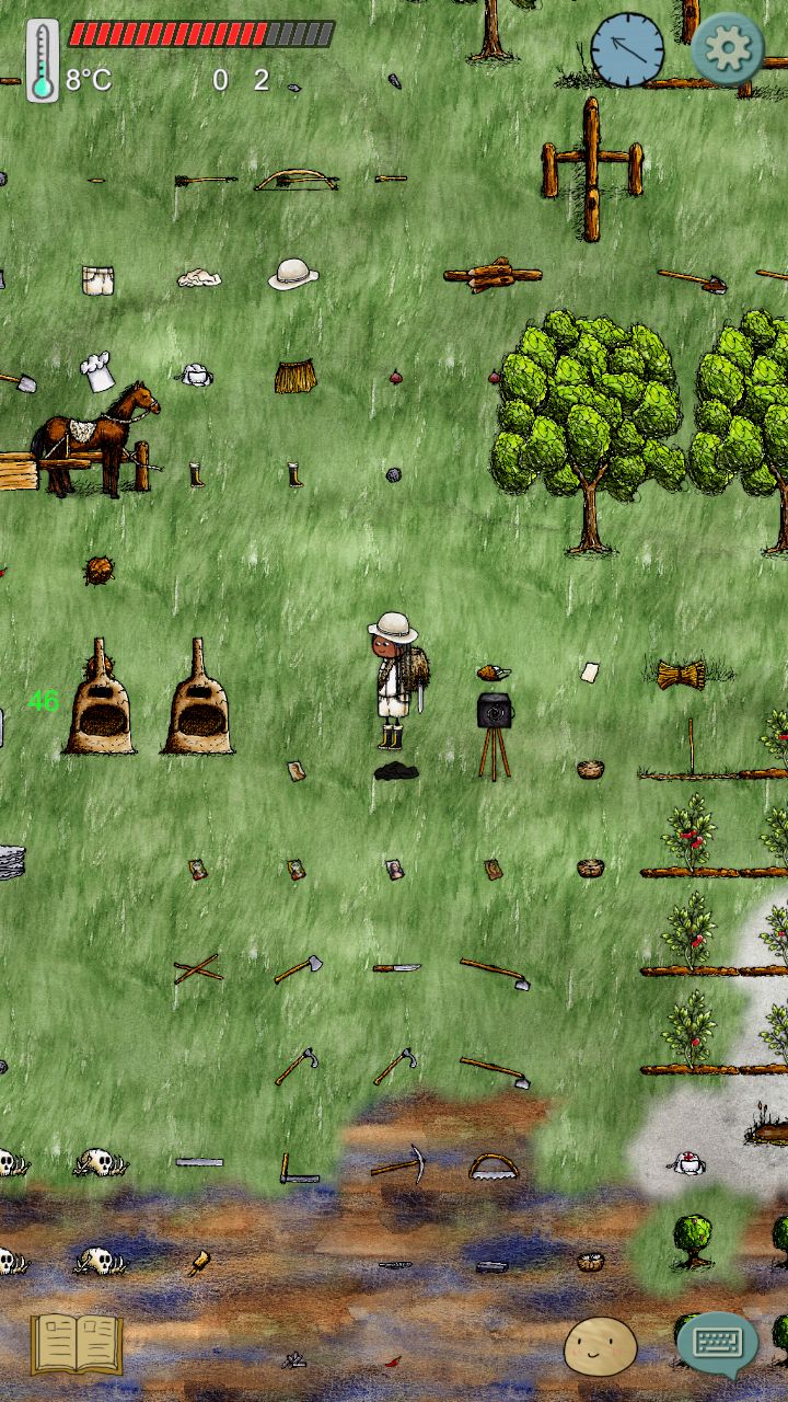 铁器时代兔子用碎石割一下会有皮和肉,皮再割一下会有四块小碎皮。最后用树枝穿上,等升的火灭了,再用火灭了剩下的碳就可以烤。然后兔肉吃掉兔骨头拿起来再放下,就会有一个骨头,骨头又在用碎石磨一下,就有骨针