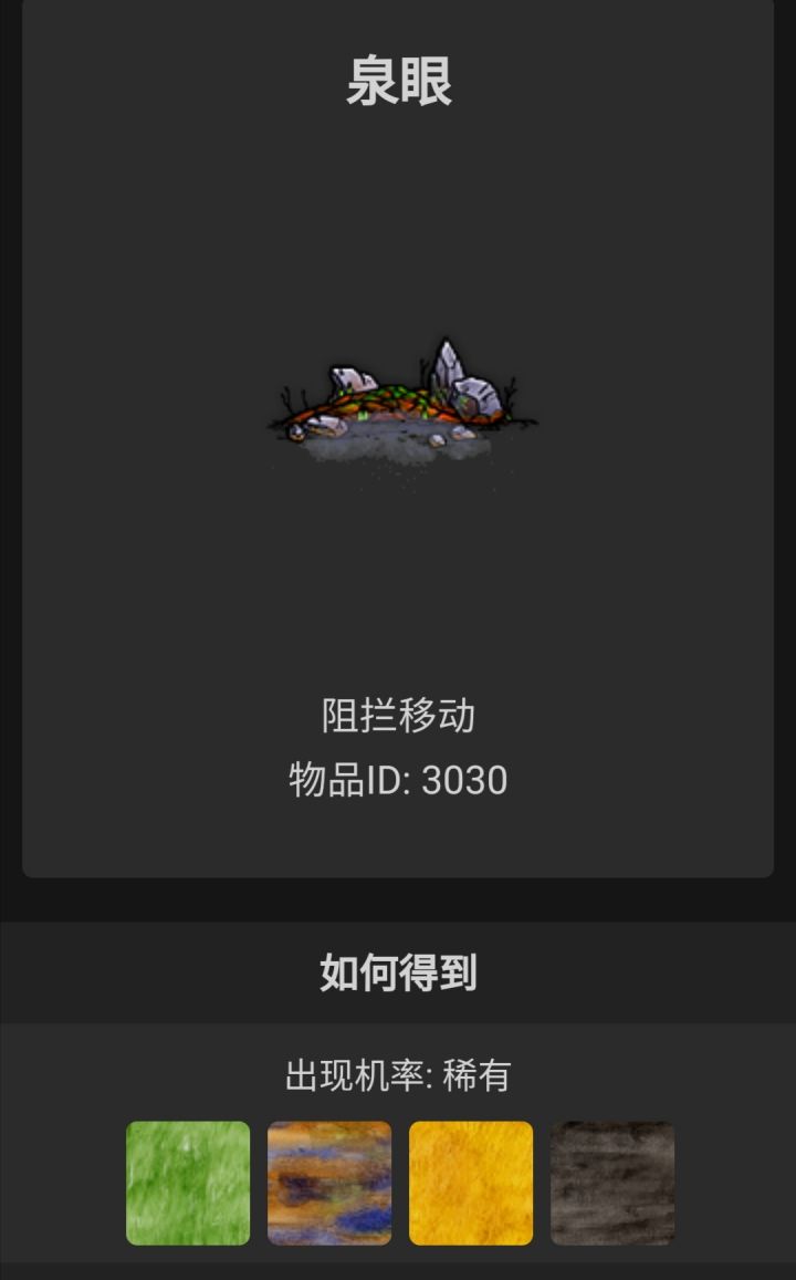 emmmmm这是我第一次发帖如果质量不佳请各位见谅分割线~~~~~~~~~~~~~~~~~~~~~~~~~~~~~~~~~~~~~~~~~~~~~~~~~~~~~~~~~~~~~~~~~~~~~~~~~~~~~~~~~~~~~首先是合成表链接http://hecheng.u0w.cn/1.这个游戏里面取消了鹅塘造井,代替成了泉眼就是下面这个东西,会生成在草地,沼泽,麦田,荒地,需要用十个石头