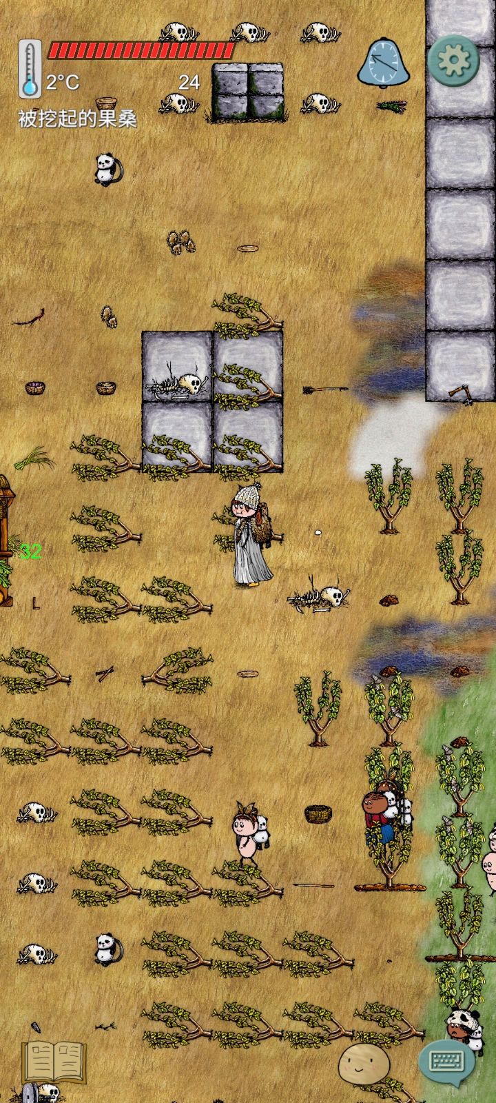 玩游戏以来遇到的几种情况,反馈一下:1.乱码不知道是我网速的原因还是什么,在屏幕上会出现一片线条乱码,大概宽约为两三个格子,通过时需要绕过这条乱码。2.地形变换今天遇到两次这种情况,比如说沙漠地形占了两格,突然其中一格变成了雨林,但是温度还是不变,小马依旧可以在这两格走动,过了一会儿后这一格变回沙漠地形。3.原石变换今天铺地板用到原石,本来一切好好的,突然原石就不见了,我还在放原石的地