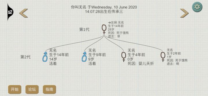 咱俩的人可以过来看看!!!夏娃档日常遇见好心人,第一次是中途有事,五十岁的时候不得不退出。临走叮嘱了一下我家孩子,最后人家真没丢下我,硬是给我喂醋栗喂到老死。感谢,不然就得断档了。第二次是咱家进了熊,估计是有人去杀没杀死还给引回来了,只能偷偷摸摸苟着,赶紧做箭。我孩子才生下来就问他回不回杀熊,说是不会只是看过攻略。但这旁友真杀了熊,最后带箭出门之前跟我说它杀熊回来估计我已经挂了,听起来有点舍不得的