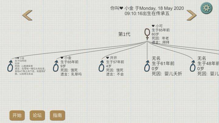 第一个我玩传承四,今天玩两三次都没有记录,老死之后显示暂无记录,再点左一个是之前作为孩子的记录。第二个是闪退的问题,以前有,但是不多,这两天经常闪退,比较多出现在刚打开游戏的时候。第三个是个小bug吧,石板路上为啥还能铺石板路,铺完之后撬掉还是一块扁石,相当于凭空消失一块扁石。第四个,娃有点多吧,一下子生十几个,有的一个刚落地死了另一个就生了。
