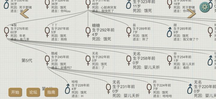我对于时间比较敏感。所以关于游戏时间线问题给出自己的一些看法。不喜勿喷!!!!首先玩游戏玩家的一生,就是婴儿到儿童阶段(1--6岁)应该是到三岁的时候可以自己采果子吃,帮忙搬运一些果子等小物品,然后(7--16)可以做一些简单的工作。比如做火堆,搬运树枝种植农作物的事情,最后还可以打猎一些事情。还可以比如给游戏人物一些具体的属性值,做衣服,石斧这一类属于手工,手工的属性值达到要求才可以做,还有就是