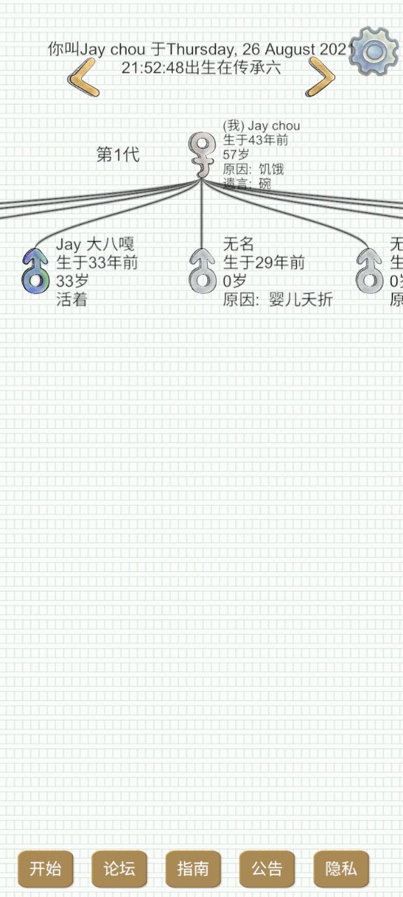 第一,我希望那个游戏组能搞一个那个叫家族日志出来,然后写一下我今天这一生打算做什么,然后说一下自己未来的打算。后面的人说不定也可以根据他这个愿景去做呀,你说是不是?