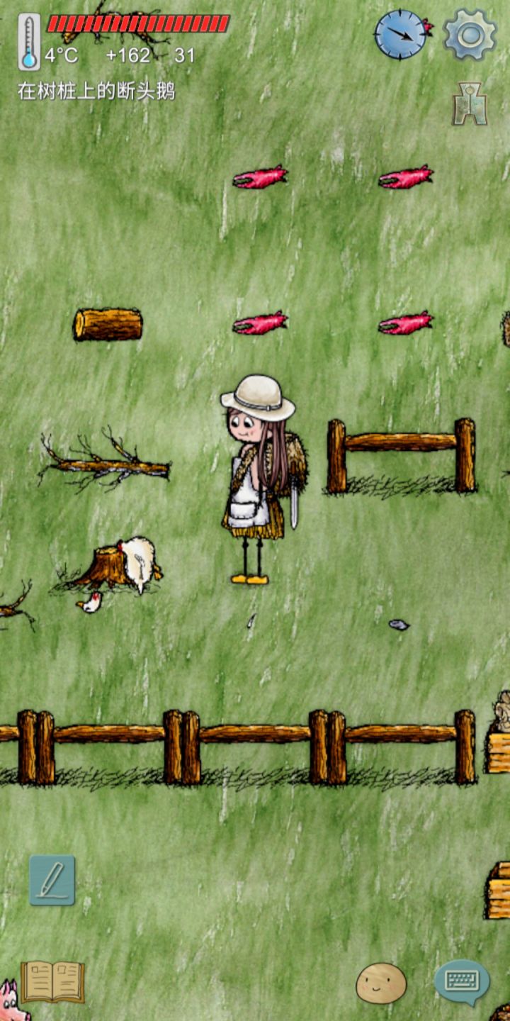这个断头鹅,它下不来了。看来老半天合成书,说要有空地面,然而我把上左右三个方向都清空之后,还是下不来。另外换了个树桩,四个方向都有空地面,砍另一只鹅,然后它下来了。每次经过这个地方,都能看到这个断头鹅在那边挣扎,草帽救救它嘛?