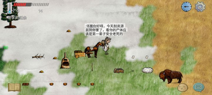 #华夏人生 出门闲逛搜资源发现右边新邻居家,尸体在大绿地,看样子应该才第一辈子安全老死的,我家就在正左方向骑马车一分钟就到了,我玩了三天之前也没去右边看过,马上回家做纸嘎羊去留言了,希望你没有断档,以后常来串门(或者直接来投奔我也行啊嘻嘻,虽然我家也才刚起步),后面再往右跑了两分钟在沼泽边缘更大点的遗迹,但是尸体在沼泽芦苇旁边,感觉可能被野猪拱死了,估计凶多吉少了。