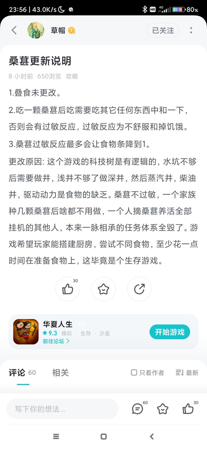 草帽,我现在才看到你要更改桑葚的贴子,我有以下的想法以及疑惑关于老玩家与萌新,大家都是从萌新或者希望过来的,希望之前的我,虽然没有桑葚这个东西,但是,刚开始吃东西也是不会到慢慢苟活的,学会之后才知道有哪些食物而如果萌新也是刚来,对于游戏本来也不熟悉的,关于桑葚也不太了解,如果自己种下之后,吃了之后,以为能一直吃,也不明白饥饿条,就死了,萌新不会迷茫呀??也不是所有人都会玩论坛和看贴子的,毕竟