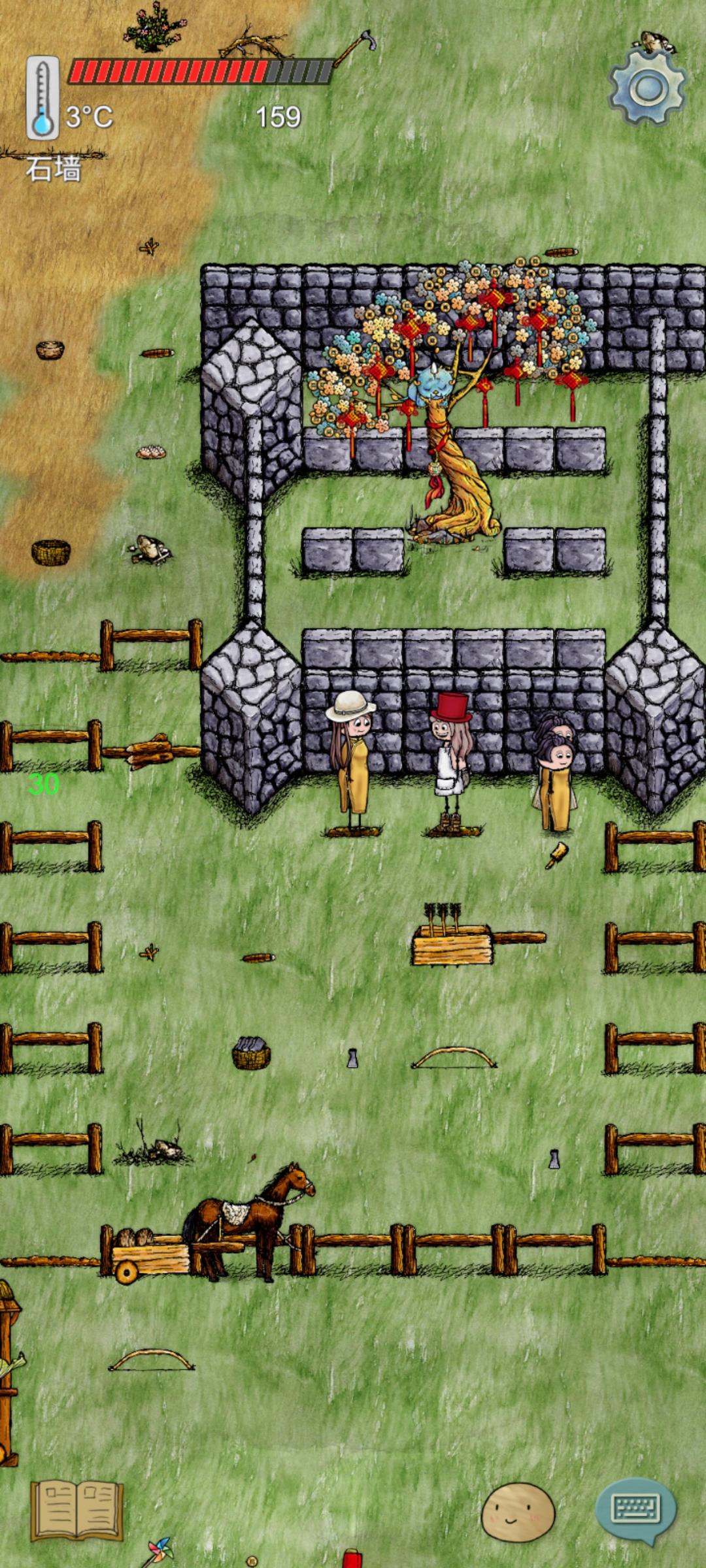 新手服碰到的兄弟,实在是太有缘了。一开始为了保护摇钱树(新手摇钱树着实不易ヽ(*´з`*)ノ)好不容易围起了墙,我们两个都老死了。没想到重生之后又见面了,站在各自的坟上留了个纪念٩( 'ω' )و