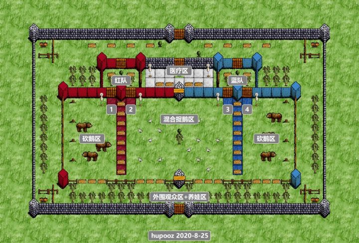 做了个小小活动场地~如图今晚哪只小狗狗有空来玩?邀请4人试玩地点:ios服务时间:大概一小时,8点-10点之间要求:能够听群语音指挥内容:四人比赛,两两组队一人捉鹅,一人砍鹅,看谁砍得多(被熊咬了,有医生治疗~)够人就玩,不够就不玩~~