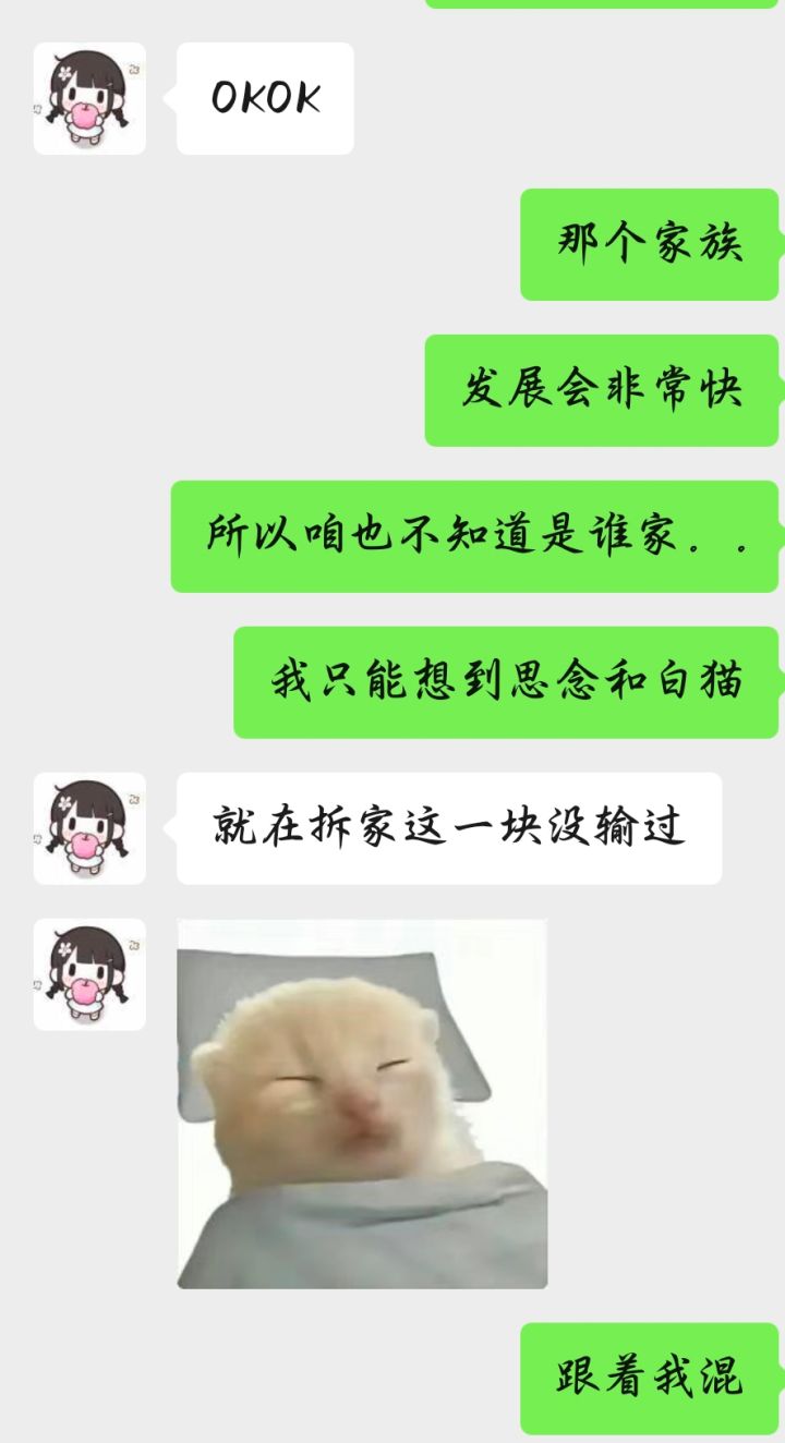 我想了想还是应该出来给桃家道个歉,之前那个飘飘然还有一些人一直说桃家家的拆郑家卡娃啥的,我轻信了,确实参与了卡娃,最后良心发现留下来喂女娃来着,请的打工仔是之前被q群拉黑的拆家狗我也想明白了做错了我要出来承认,那个飘飘然是我识人不清,我也感到很抱歉。。。如果桃家再开家族我会匿名弥补后面大家帮我这么多还有这么久以来我也都看到了大家都帮了我很多,我也感觉我做的很坏,被人撺掇就干坏事了,对不起,