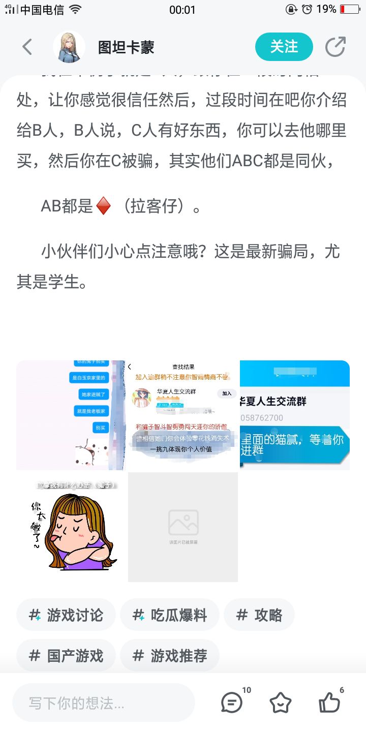 这是这是上个帖的内容,证据都在这,不信者加群,看证据q群(1058762700)故意造谣说我们整个群都是骗子,甚至这个人被骗都是半个月前,他证据不出去,直接冤枉人,号主都还在我们那个群里,甚至不是在我们这个群被骗,我有理由怀疑他就是当初这个小学生骗子,的小号故意造谣说我们这块全是骗子没时间营造一个特别善良的人设,最后继续骗我是这个被骗的玩家,造谣全是骗子的群主 - TapTap