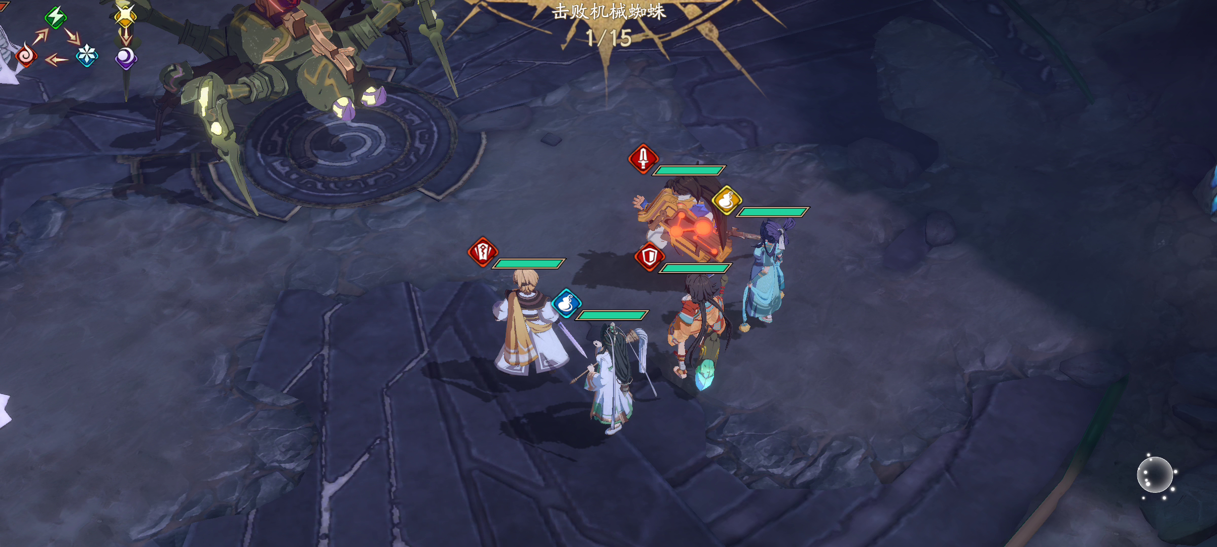 几个人物都是53级算不算全网最低级,练度也很低都是3-4星,几个关键点和大家分享,依依的站位很重要一定要能减攻BOSS,注意周围的小蜘蛛,调整好位置别被小蜘蛛吃到了减攻,前面有大佬发的打蛋攻略,我试了用不起来,唯一庆幸的是曹无名的蛋很固定,基本不用悔棋都能出,左上角那个独立的蛋。Boss的技能不说了,不带牙和毒就对了,这两个伤害太高,全程不要碰小蜘蛛,让依依护卫打,只让依依一个人吃小蜘蛛蛛网,主动
