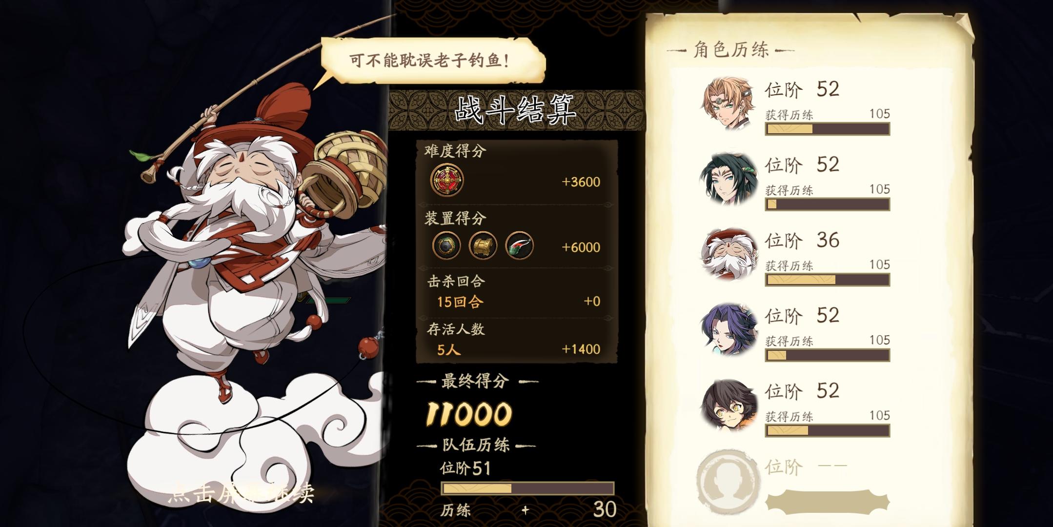 没有悔棋的小伙伴可以选择打一下看boss的技能。我带的是背甲,毒,眼,好像有蛛丝效果的角色boss用毒不会扣血不知道是bug还是什么,封妈的再动给好无名,夏侯仪用燃烧负责把背甲破掉。80免伤很难受,要是血不够的可以站桩。然后老头不仅前期可以传人去凹几个npc,后面的话还可以把在boss范围的队友给传回来,这时候可以保住封妈和太渊,总的来说挂好燃烧效果,凹出两个npc你也可以做到5人不死,就是太费回合了。刚刚好15个回合