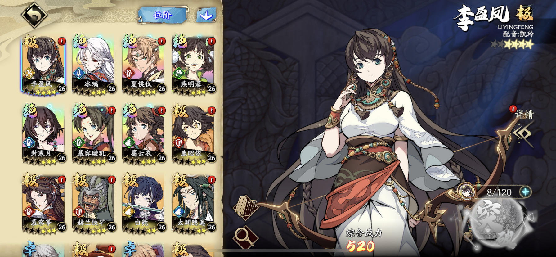 说明:为了收集列星成就不得不把角色升到36级,因此角色强度有质的提升(列星可以基础攻击增加10%),和35级差别很大。上阵角色:- 殷剑平(4星,36级,1341,罗鬼,无方+融会+移形)(携带击杀再动的饰品)- 夏侯仪(3星,36级,1156,朱焰,离火+天火+炎之力)- 冰璃(3星,36级,1177,幽魉,幽剑+追袭+避实)- 鹿昭依(3星,36级,1071,咒石兵,誓死+泼风+缚力