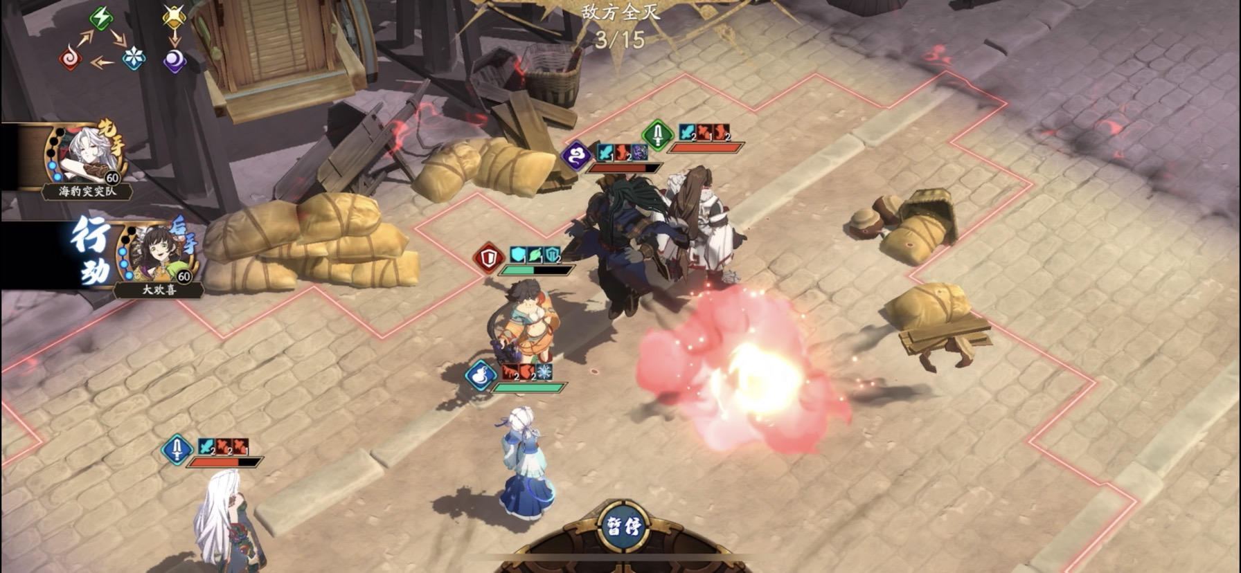 挤一挤还是可以打的(凹暴击)5星曹:罗鬼套 天狼头 减物防身/腰 暴击手/加攻手 劫焰+追心+遁匿5星夏侯:魔火套 单体加攻头 加攻手 离火+焚火4星剑平:罗鬼套 天狼头 减boss伤害身/腰 日轮+无方+吹角封妈:最好尸魔套,实在打不过只能凹运气buff冥葵套 瞬霎皇甫申:肉套 减魔防身/腰 号令第一回合:剑平在b下3格待机皇甫在b最下开号令夏侯在b下2格开焚火(1w)曹沁在