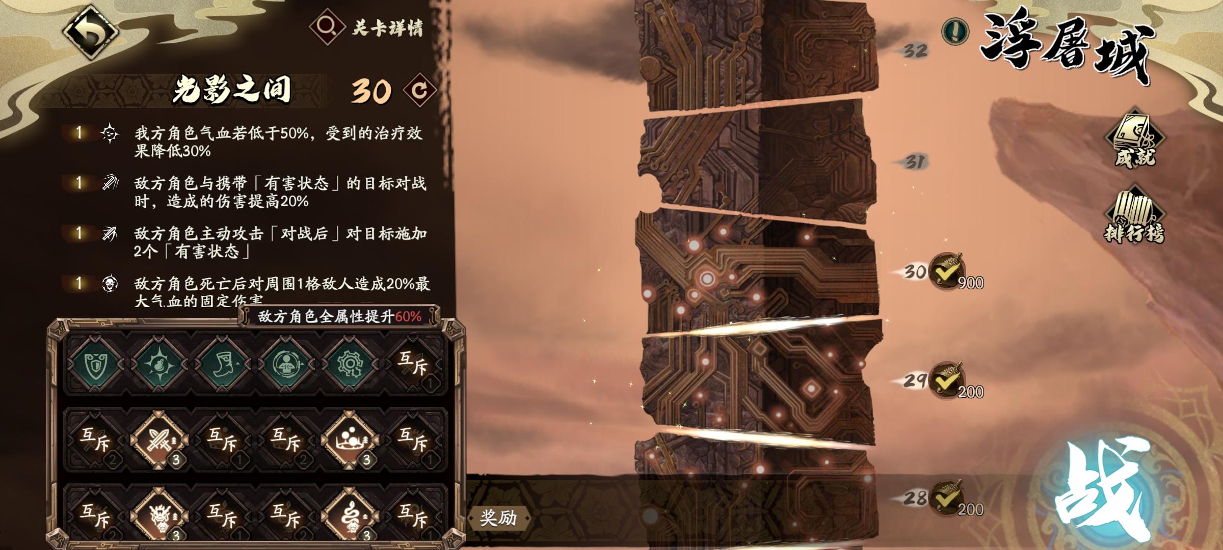 大家好,我是五区月隐大漠的开服玩家拉二,NGA同名攻(zhuang)略(bi)贴也是我发的,非转载顺带配上本期旧域天堑罗喉幻影三回合视频以下浮屠塔正文:这次活动与之前最大的区别在于,所有敌方的属性都强化了不少,但都没有对固伤的减免所以思路从硬属性输出变成了固伤堆叠,而且一定是百分比固伤,因为物攻比例的固伤对敌方的血量来说也可以忽略不计再加上竞速词条中还有每回合攻击降低,也就使得靠属性打硬
