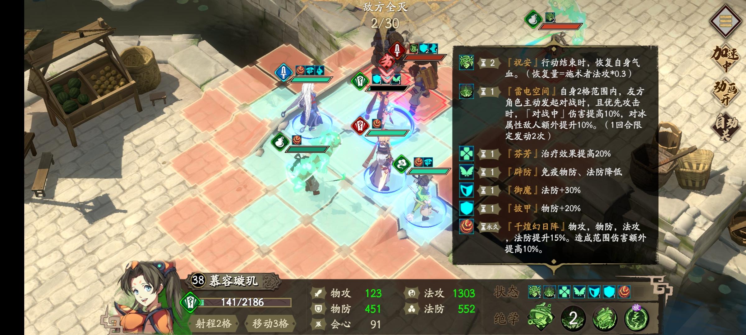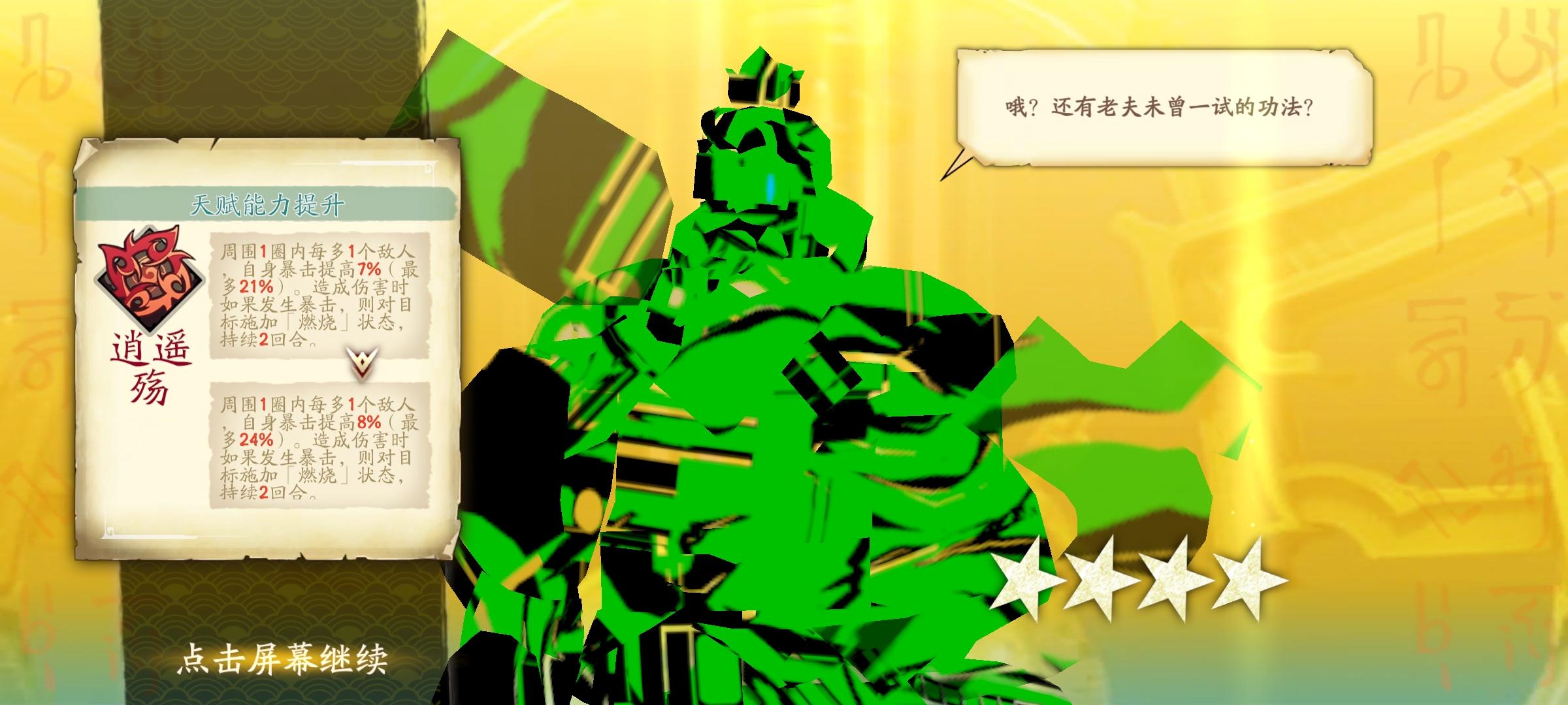 开始被战旗、武侠两个元素吸引过来。武侠风很足,画风、动画都很好。但是战旗水平没跟上。即使是越级,思考的方向更多的也是偏向于练度。也可能是因为之前玩过三国类战旗,一个图平均500格子,上阵10个武将的那种,打完一把有难度的关真的有那种排兵布阵相互博弈后胜出的快乐。当然也能理解优秀画风和多格子难以共存。。还是会选择留下,毕竟我感觉抽中了卡真的爽。