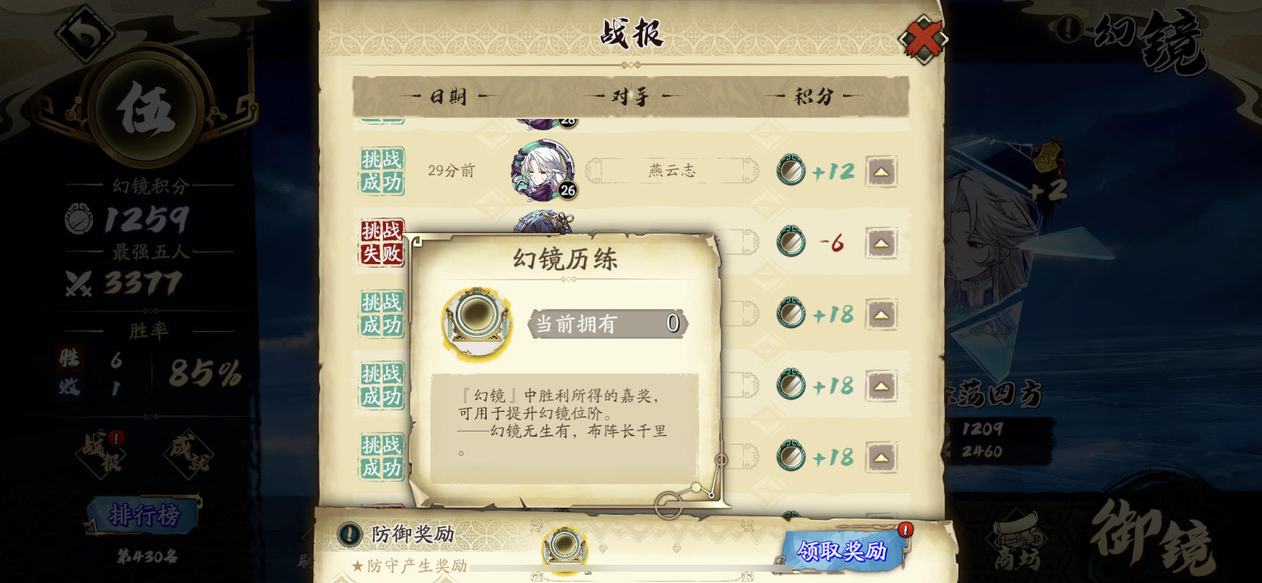 幻境历练这个有什么用?怎么一直是零?还每次防御成功都让领取