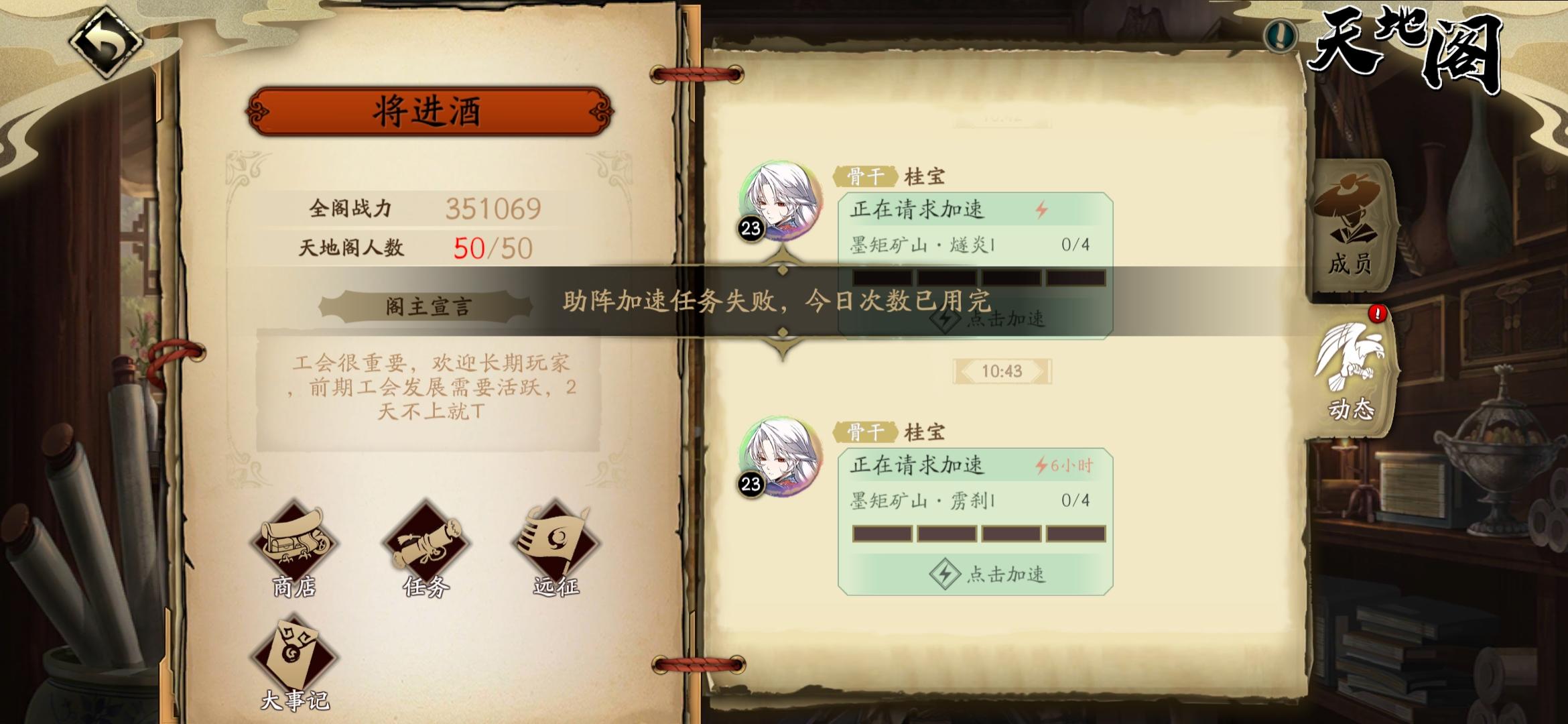 有一天连被踢2次,每日上线就是没了天地阁,战力也跟大部队差不多一百多的排名,也是随机加的,为啥我被天天踢啊,入阁要48小时才能领奖励我这区都快一周了真恶心人