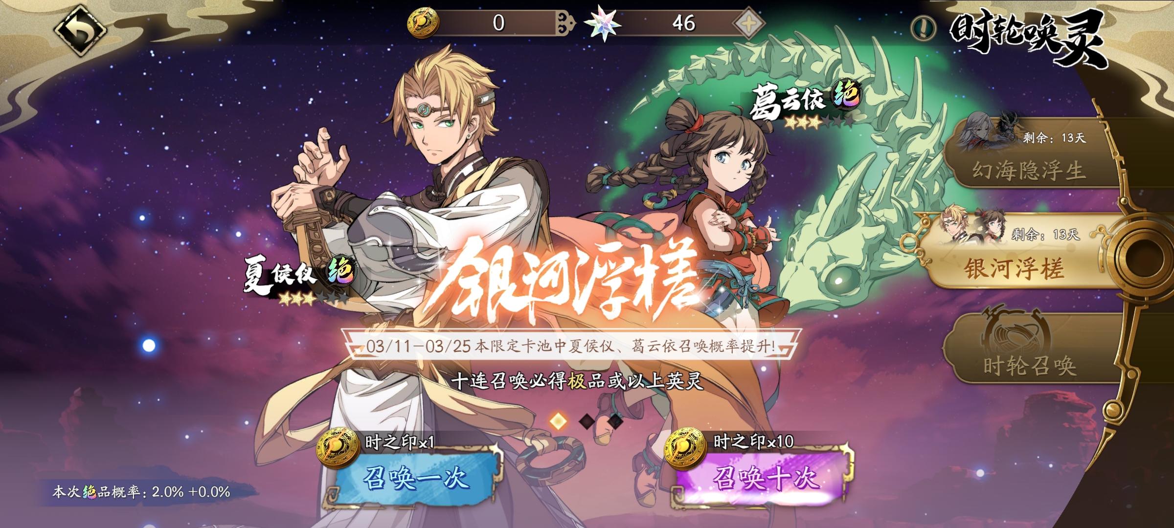 初了新手池和冰离池各10发,全在夏侯仪池了,70多发屁都没有,左下角的概率也没涨,是bug吗?