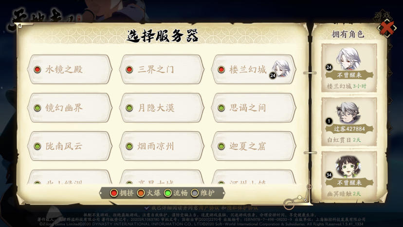问下大佬,之前老区有号(如图)但玩了几天就因为别的事情耽误了一直没玩,现在仙剑联动想再来是继续玩老区还是等开一个新区