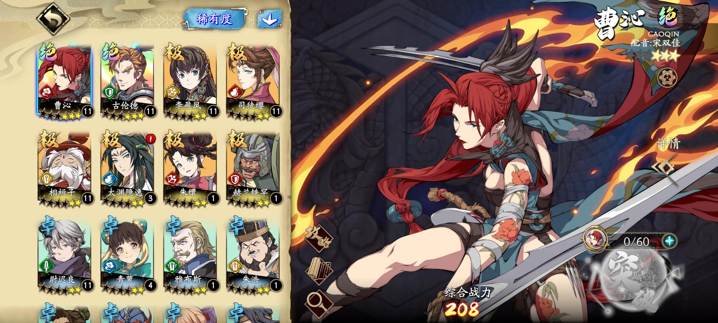 在游戏中提升见闻的等级也是非常重要的,在过关卡的时候就会增加经验,经验值满了就可以提升见闻等级。提升GM的等级,就必须通过战斗提升位阶。如果用这种方式提升等级慢,还可以使用炼丹来提升位阶。在游戏中提升位阶,主要的目的是加点五内。五内分为魂、神、魔、迅、烈,每个英灵主五内中的三内,1条主内和2条辅内,提升五内就可获得绝学技能。在游戏里,2条辅内对应角色2条不同的战法属性,主内主要控制兵刃淬火上限,