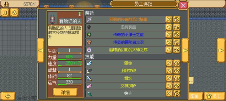 人物和配方获取战斗系英雄T0鬼面 (有胎记的人,纯靠运气,血统检验者)给钱买图纸和一把不净王之剑就可以招出场一滴血,可以先给他学生命限制,不让他增长血量。然后学强命(50%概率不死保留一滴血),学完强命就可以把血量成长饰品和生命限制去掉了。不要带盾。快手(必定先手,受死图怪几乎个个比你快,不带就容易被秒)背水(生命低可以加力量,反复强命可以反复触发背水)。最后带个上限突破和龙卷,