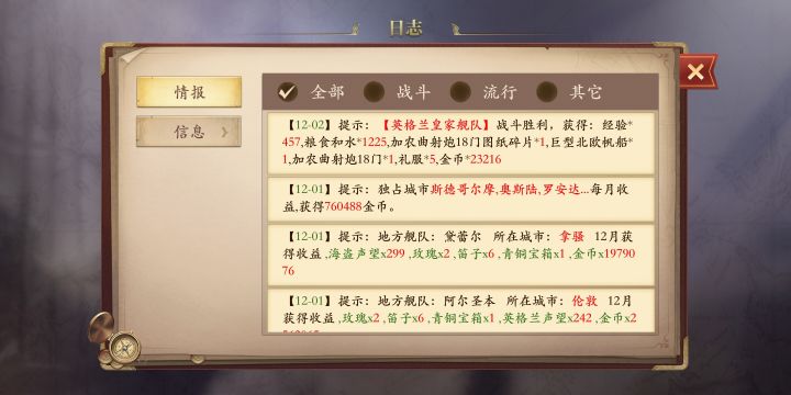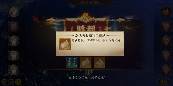 因为是第一个档,所以买完经验加成直接忍受不住商品船的诱惑,买了个女王号,然后看攻略区的大佬们各种的国家队推荐方法,我一个一个实验了一下,我感觉最舒服一点的就是这个4炮一排。