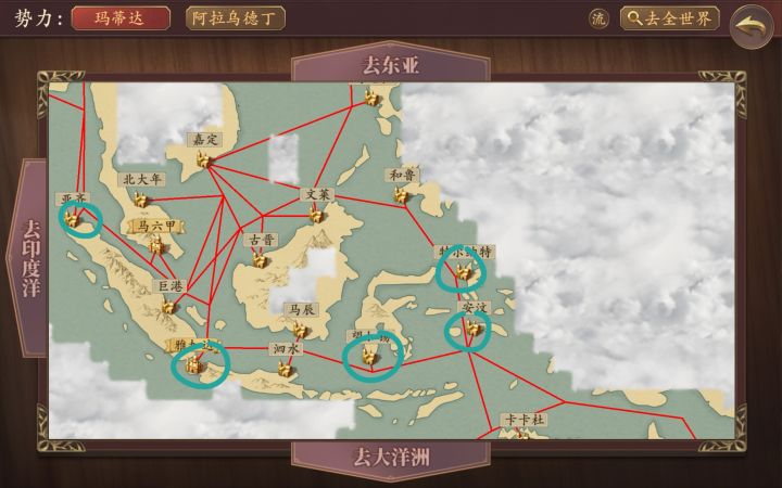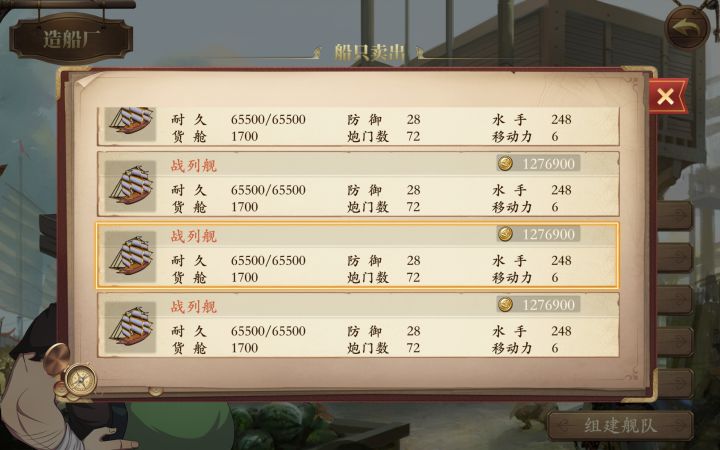 推荐给新人的香料贸易:香料群岛扫货,拉到北欧出货,轻松获利。图中画圈的是主要的香料港,出货如果没有特别的行情去伦敦就可以。加航速的吧女优先拉上船,跑一趟省很多时间,韦拉克鲁斯,塞维利亚两港酒吧都有,选个喜欢的就行了。这一趟差一点五千万,成就没了…😂建议新人排船开局,可能有人觉得帆船能打能跑商,一趟利润就是一条大船。不过排船嘛,运气好直接一个分舰队就上岗了,如图四。排船的好处主要是初始资金积累较快,想开别的船,抢来就是了。个人见解,不喜勿喷。