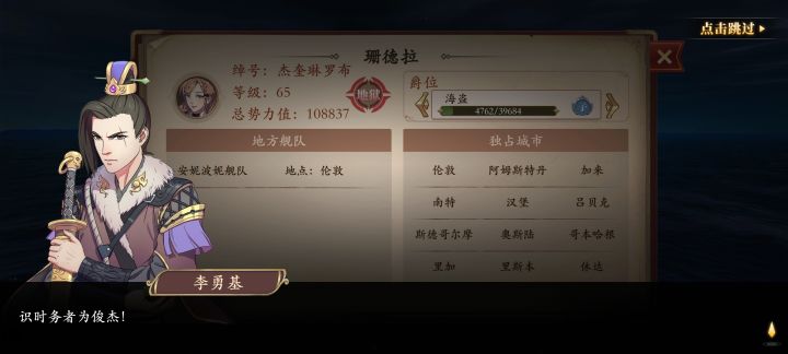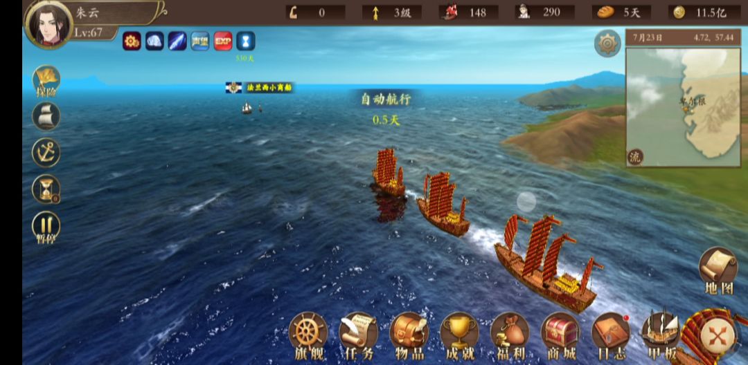 半退坑了,留点心得给萌新,防止被误导,欢迎真大佬来补充。玩过航海的都知道,航海类游戏就这样,总有一些会玩的成天吹牛逼,误导人,还一些啥也没玩懂,也在那吹牛逼,误导人。1.威压并不会因为自己不是100%占据导致任务无法触发,从属占有度加自己占有度达到100%一样算自己100%。2.关于跑商,开局就让人跑长途,这不是坑人是什么,缺乏占启动资金,缺乏占有度,缺乏物品星级,还缺乏船舱船速,费半天劲根本