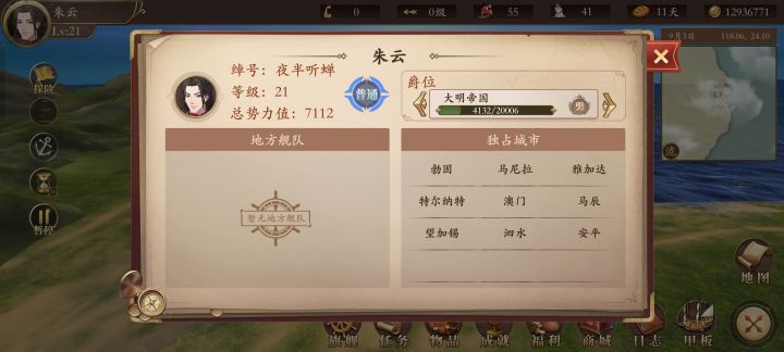 招募满水手,港口里打开地图点击别的港口导航,出港后所有船只水手都会变成必要数!手动点击码头补给出港水手数则正常!