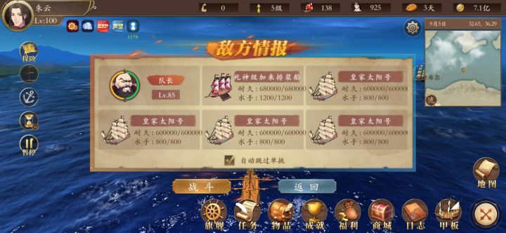 序: 听说地狱难度来了,俺回来瞧瞧。稍微体验了一下,感觉很不友好,指完全删除存档。避免sl大法可以李姐,自动存档都不让用,这就脱离了一个单机游戏的基本素养。一个不小心船全翻,基本就可以重置存档了。其他方面难度加大是可以的。计划: 在不用钻石船员和钻石船的条件下完成七海统一。功能有自动使用物品、双倍声望,无双倍经验。(实际上地狱难度应该是默认玩家有氪金船和人物的条件下展开的,根本没有必要探究脱离