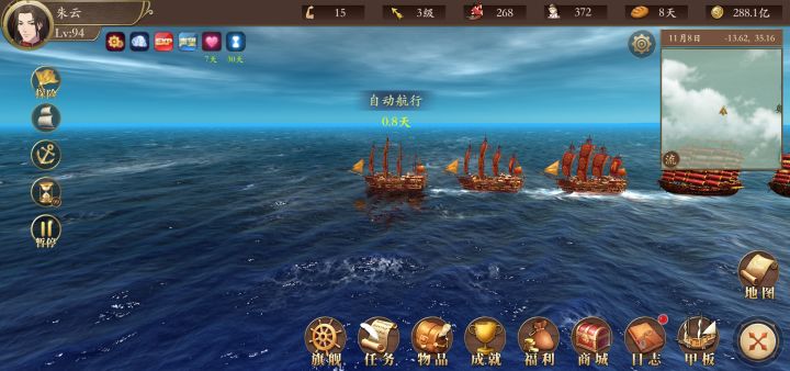 求问老船长最快航速多少?94级朱云,三踏浪两郑和,吧女开启,顺风八级时最高282的航速,有没有老船长跑到300航速的?截个图让我欣赏下