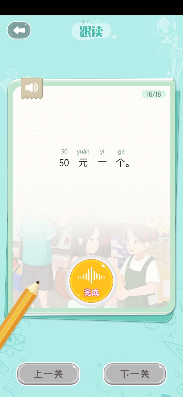 这个数字加拼音真是一点儿都不违和呢!还有这个日常对话不能改成故事之类的吗,哪怕是成语故事也可以呀。普通游玩跟1000句评测的判定机制是不是不一样,一个我永远三星,一个不及格?问答题就更奇怪了,我就没得过分。还有因为升级建筑被卡关,又一定要四个建筑轮过来好难受。
