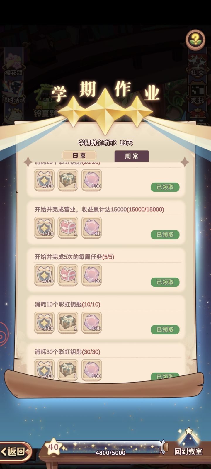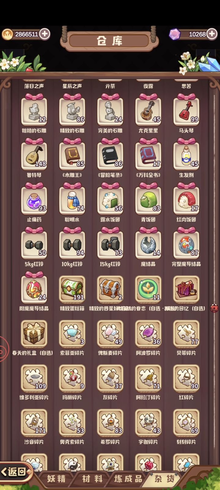 抽彩虹钥匙周任务领取了三个五星随机妖精礼箱,但是仓库里怎么找也找不到