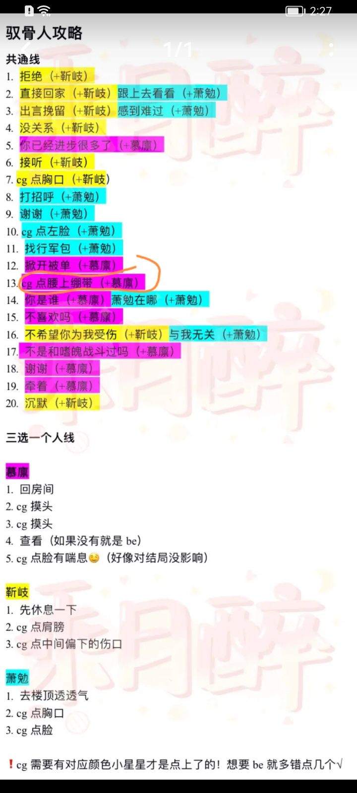 通关后给新手玩家一点提示1.开局会问你喝酒还是不喝酒,选择喝会获得一张cg2.真的要随时打开菜单存档,我真的因为这个的是吃亏太多了3.游戏有be和he,需要点cg固定的位置比如脸啊什么的,点错了就会be4.卸载游戏以后不保存进度,重新下就只能重新玩通关攻略https://www.taptap.com/topic/18320088官方的分割线好可爱啊p3
