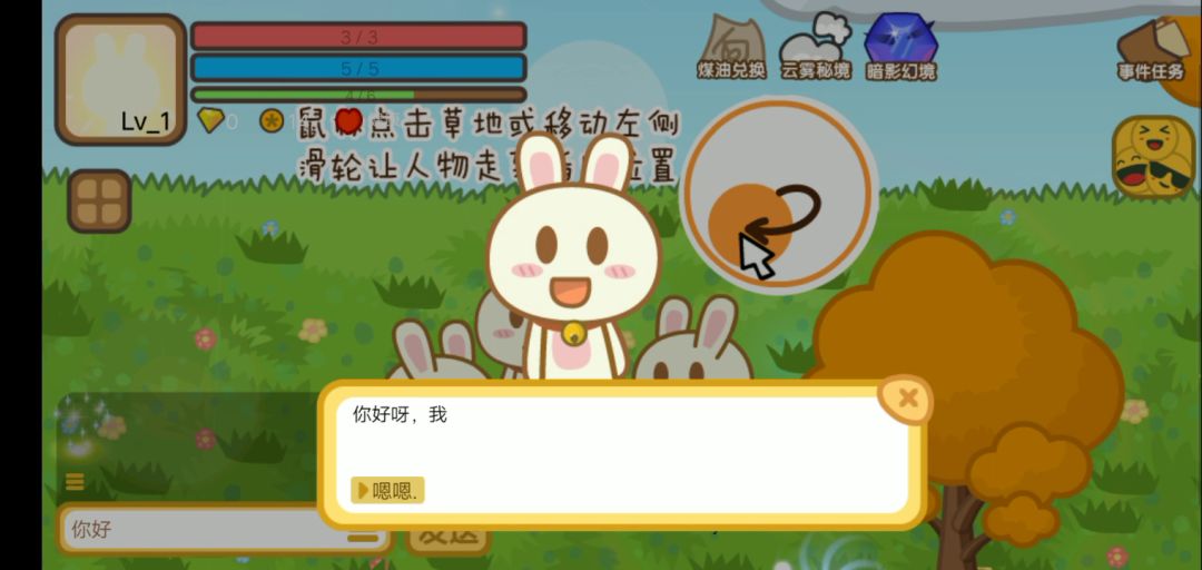 关注这个游戏有一段时间了看着兔宝世界不断进步非常有意思~那么 以下是我对游戏的意见与建议1⃣文字对话的“语速”可以调快一些 或者点击空白处显示当前对话框内的所有内容这样比较符合我们平时的阅读速度2⃣文字提示完全可以出个教程而并不是直接打在背景板上 这样让我感觉很奇怪可以像光遇那种点击角落显示ui保持游戏屏幕的整洁3⃣点击兔宝对话完后会显示一两秒看不太清的巧可的话这个算是bug吗