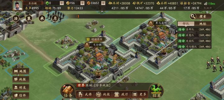 偶尔还是能看到有些纯萌新玩家不知道怎么盖分城以及分城的具体作用是什么,这期我们就具体来讲讲分城的作用。一、建筑分城建立分城没有规定说中心土地需要达到几级,所以中心土地是1级也可以建造分城。首先占领7块相邻的土地呈“壬”字形吧,建筑分城的资源需要木材、铁矿、石料各一万以及等待6个小时的建造时间。二、分城的主要功能1. 资源类分城能够建造仓库、农耕、采石、伐木、冶铁、课税、社稷图,等级上限和
