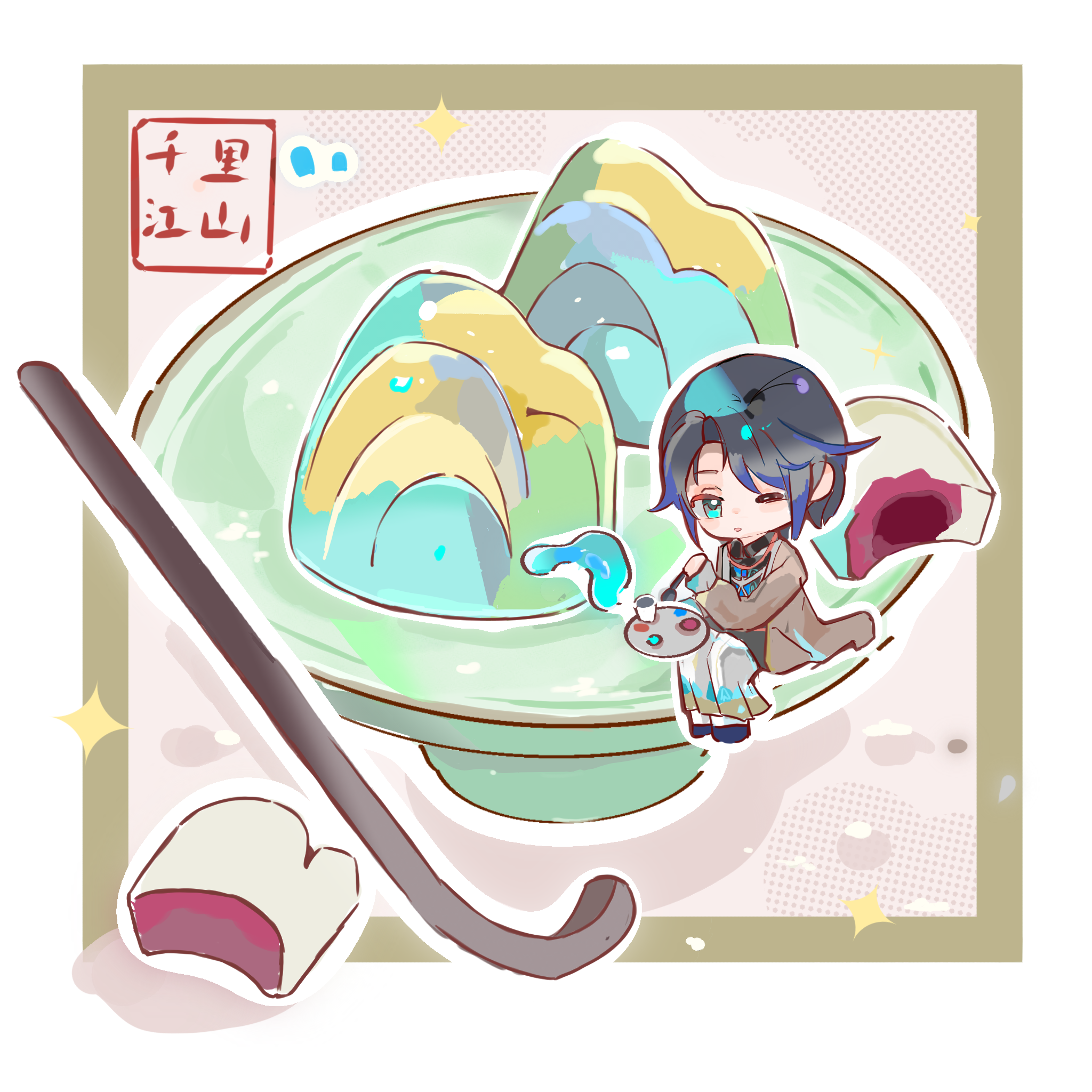 昨晚才约的也没加急,但今早一醒来就看到了成图,幸福感upup,如此美味的千里。#千里江山图