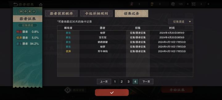 除了第一次必出一个金以外。剩下的都是蓝,不说出红了,金都没有一只,你确定是5%的出金概率,0.8%出红概率?按理说这个概率不应该啊,有没有人在这个池子里出了金或红,让我开开眼