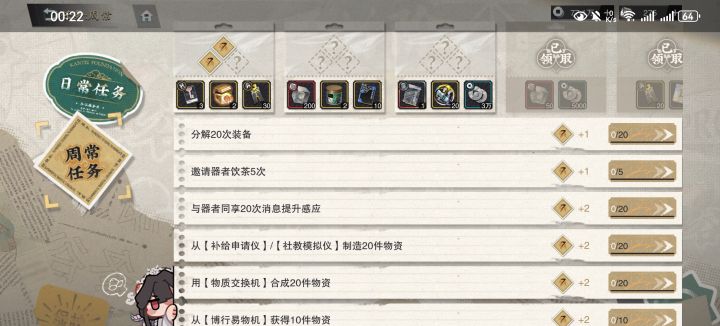 周常记录过了0点被刷了,正常应该是要凌晨4点更新才对吧。这样影响做周常了,本来有几个都快完成了。#物华弥新