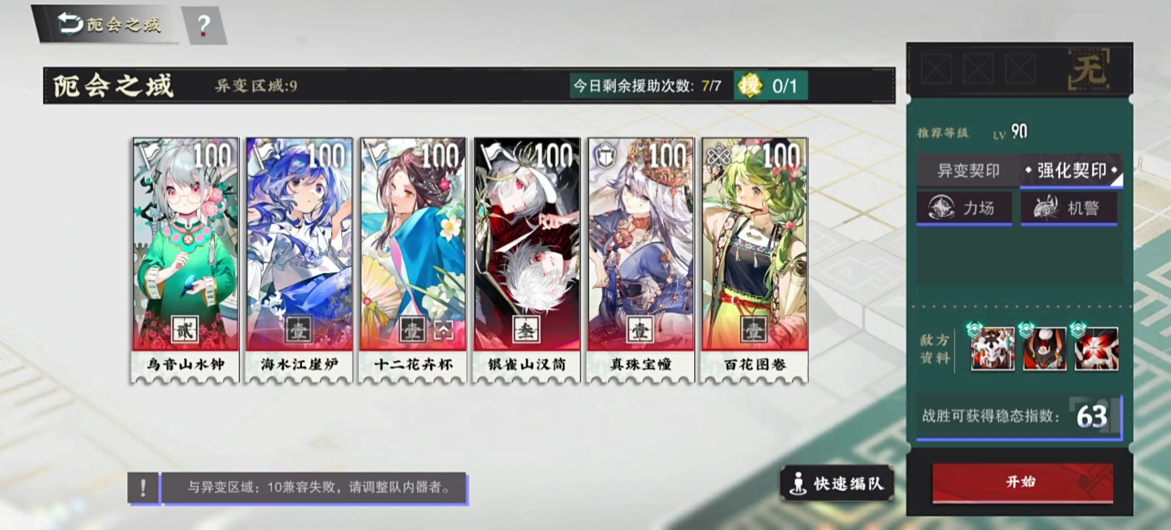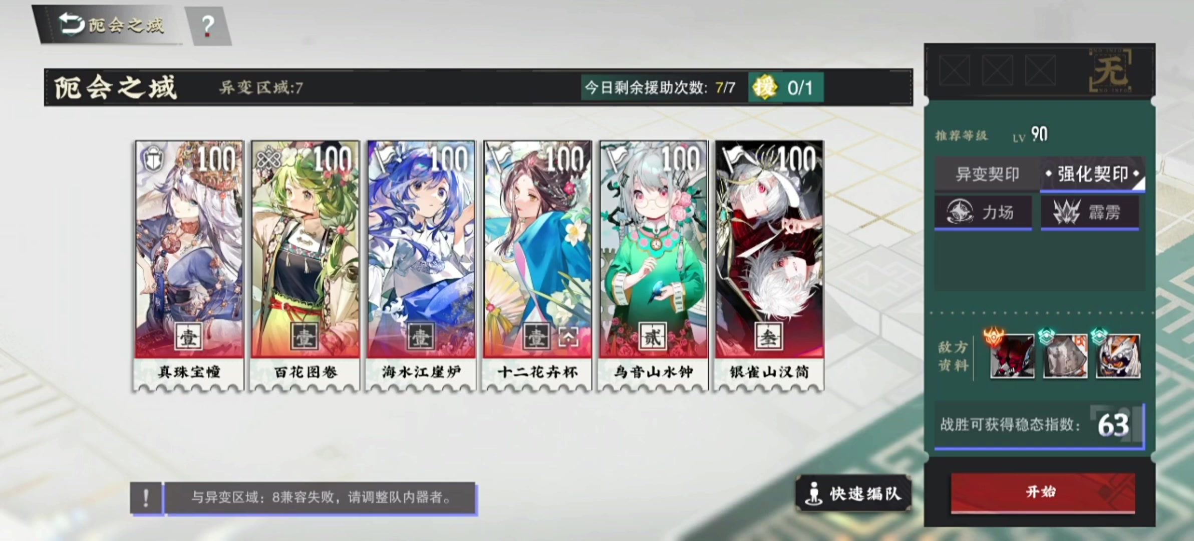 【物华弥新·阨会之域】无阵亡63分通关7&8