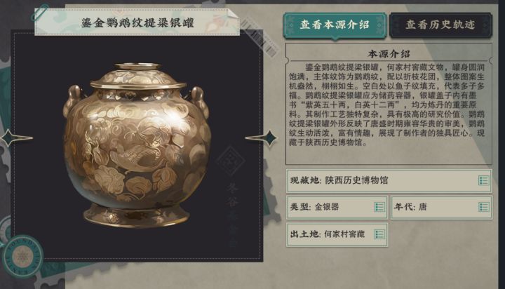 鎏金鹦鹉纹提梁银罐是唐代的一件国宝级文物,以其精湛的工艺和独特的装饰而闻名。以下是关于这件银罐的一些详细介绍:- **出土与收藏**:该银罐于1970年在陕西省西安市南郊何家村的唐代窖藏中出土,现收藏于陕西历史博物馆¹。- **尺寸与材质**:银罐高24.2厘米,口径12.4厘米,底径14.3厘米,重1789克。整体为纯银制作,纹饰部分鎏金¹。- **设计特点**:银罐装饰精美,以鹦鹉纹为主