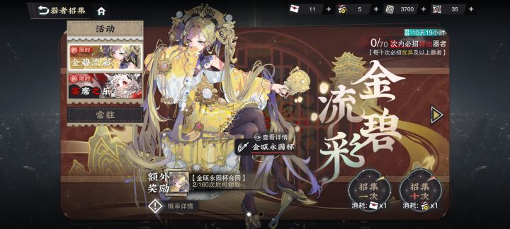186抽六红5命金瓯永固杯,外加一个狸猫盘,云雷纹是新手池子2发出的,五星是召集7发出的。没歪过,根本没歪过~哇~爆率真的高~#物华弥新小日常