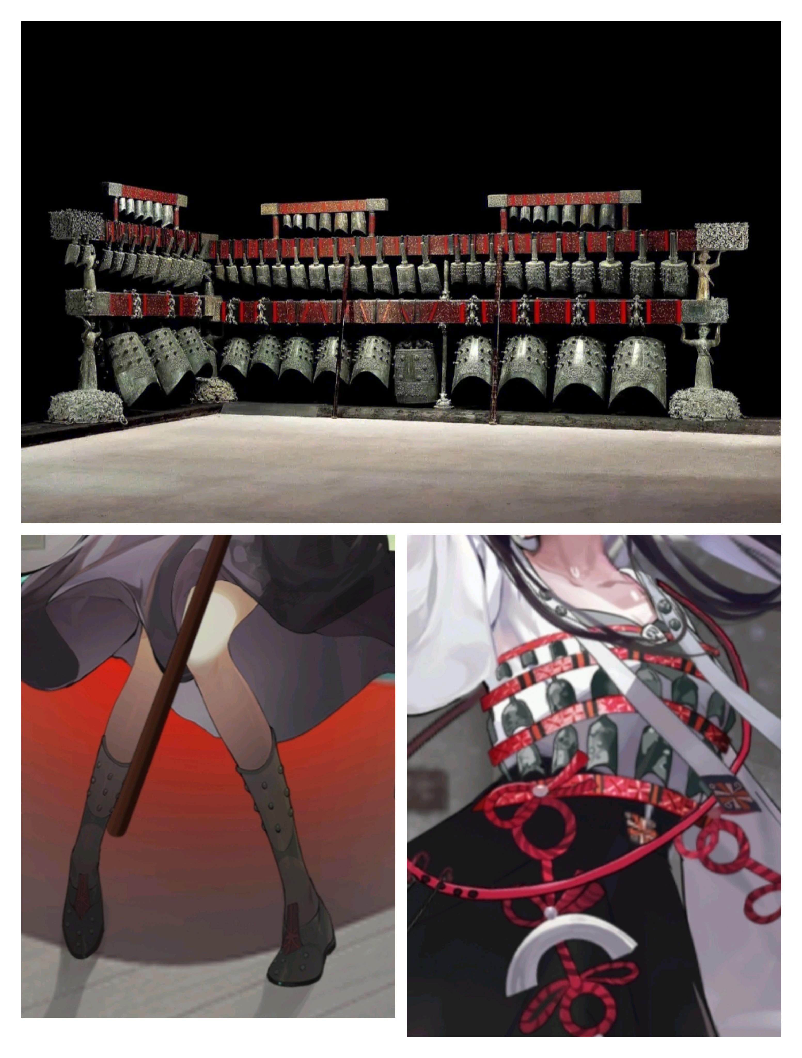 曾侯乙编钟:战国早期青铜乐器规格年代:长748厘米,高265厘米,全套编钟共六十五件,分三层八组悬挂在呈曲尺形的铜木结构钟架上,最大钟通高152.3厘米,重203.6千克。战国早期出土年代:1978年在湖北随县(今随州)擂鼓墩曾侯乙墓出土收藏地点:湖北省博物馆,为该馆“镇馆之宝”。是至今世界上已发现的最雄伟、最庞大的乐器,被誉为古代世界的“第八大奇迹”。器物经历:自1978年出土以来,曾侯