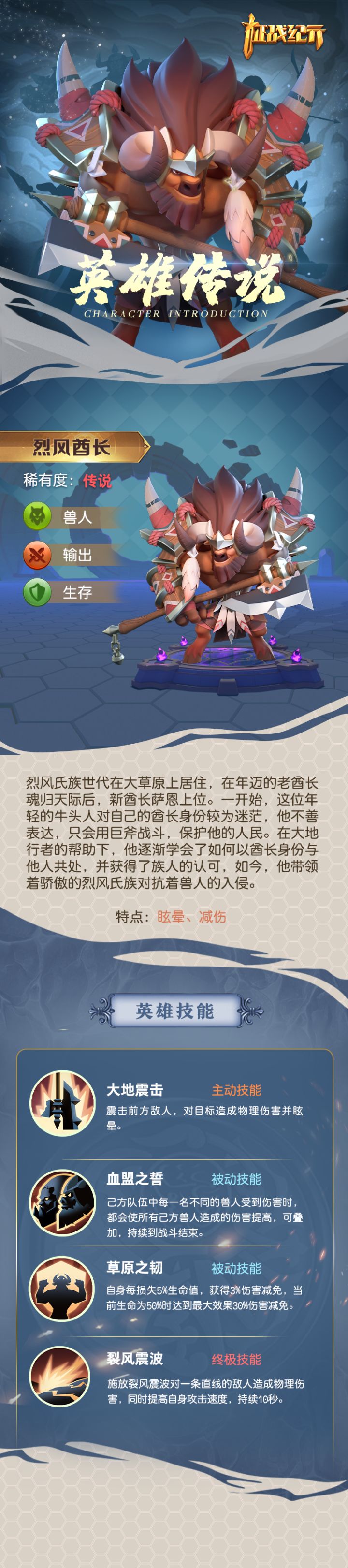 亲爱的领主大人们,大家好~我是你们的薇薇安 ٩(๑•̀ω•́๑)۶又是一周的开始,许久不见的英雄传说又来啦!今天给大家带来的是战斗中领主大人们常用作前排的兽人燃血勇士努克!顺便悄悄告诉领主大人们,这一年快结束啦,我们的沃普如斯大陆在等着领主们的回归哦~只要再稍稍耐心一点……今天的英雄传说到这里了,祝领主大大们这周有个好心情~!创新挂机战争策略手游,就在征战纪元!加入征战纪元