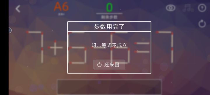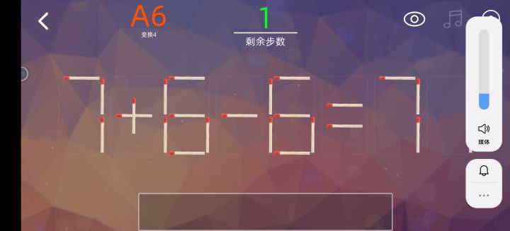 这关有bug啊,我把右下角的火柴删了,7+6-6不是等于7么。。