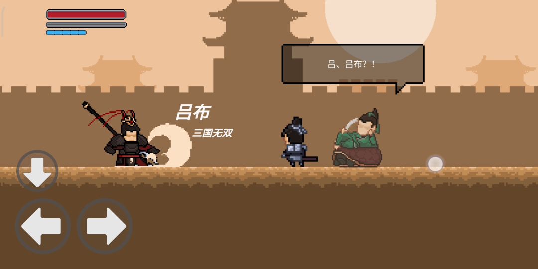 怎么做吕布的横向大招:1.往吕布那里二连跳,2.站在地上飞出来的方天画戟一跳就可以。一次过,希望能加一个养成系统。